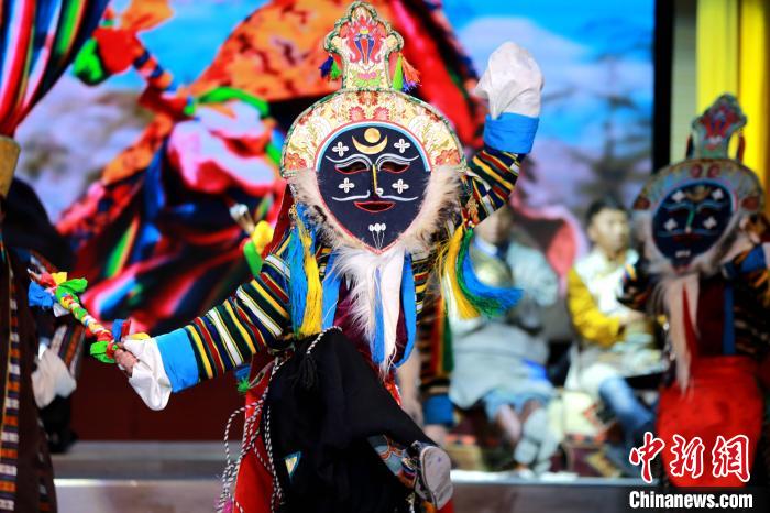 圖為啟動(dòng)儀式上的藏戲表演。梁犇 攝
