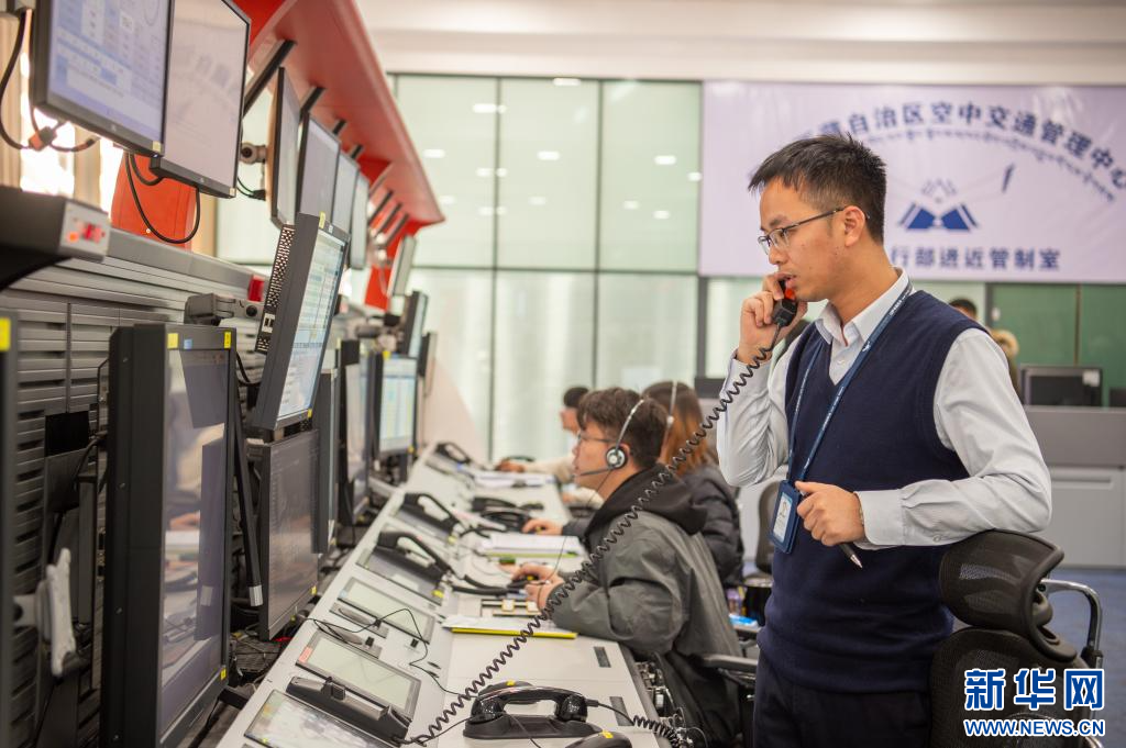 1月14日拍攝的西藏空管中心管制運輸部進近管制室。新華網(wǎng) 旦增努布 攝