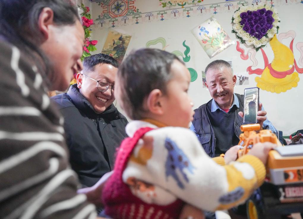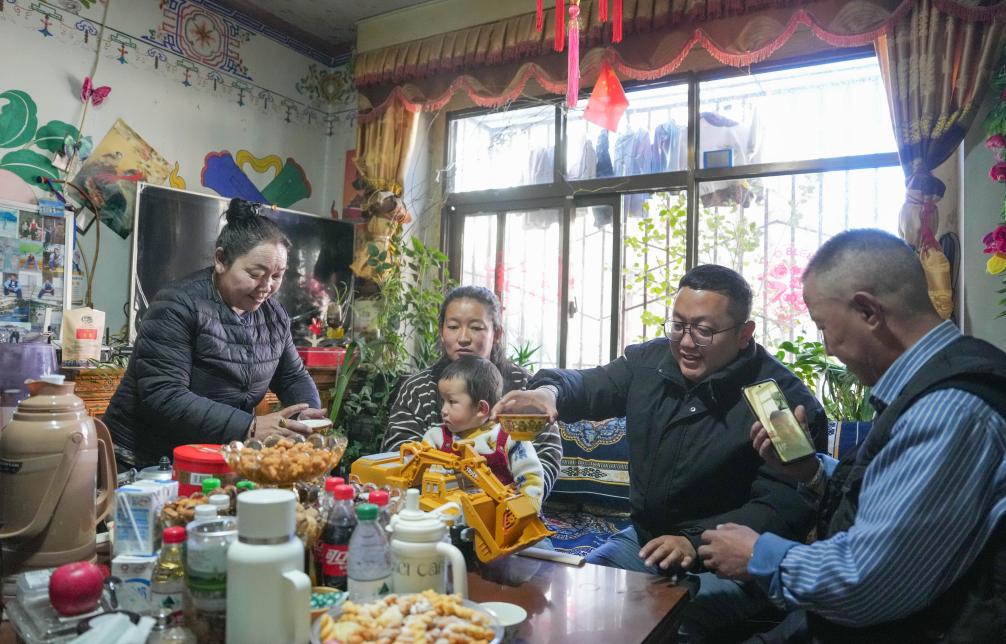 1月29日,孫建學叫上孫子和老家的家人視頻拜年。新華社記者 晉美多吉 攝